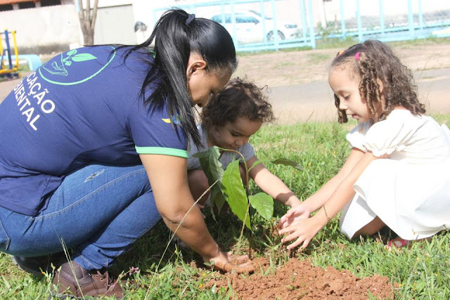 Nesta terça-feira, 4 de junho, as equipes de educação ambiental realizaram plantio de mudas nativas no Parque Ambiental do Setor Castros, com crianças do Cmei Professora Daniela Silva de Brito, enquanto alunos da Escola Municipal Alexandre Pereira Lima participaram da Locomotiva Verde.